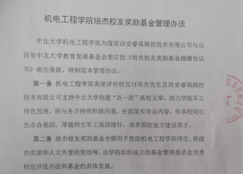 学院师生高度评价校友付培杰董事长及西安睿高测控技术有限公司支持中北大学创建“双一流”高校义举、助力学院军工特色发展,将按照议定的捐赠协议书及管理办法,组织成立基金管理委员会,全面落实协议内容,将基金全额用于资助机电工程学院优秀师生、班级的奖励和人文关爱的资助等,不负校友期望,继续传承校院红色革命基因,厚植师生军工报国情怀,共同培养国防地方建设英才。