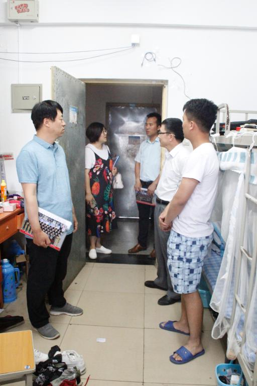 2019年6月30日晚7时,机电工程学院党委书记罗建国、院长王志军、党委副书记刘光、副院长李世中、团委书记李晶晶、学生科段志薇老师与毕业班班主任等深入学生宿舍看望即将离校的本科毕业生。