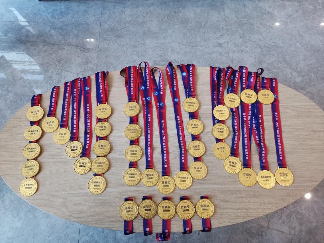 本届大赛在人人对抗赛(编队赛)的基础上,新增智能(AI)博弈赛。其中,来自全国14个赛区的1万余人报名参加人人对抗赛。通过校园选拔赛、区域选拔赛,128支队伍进入国赛。我校王国岩、冯俊淇、陈一波组成的“反攻”队和李卓岩、高雅芝、张国强组成的“Takeoffs”队以较强优势一路挺进八强,晋级编队赛总决赛。共有28支队伍参加智能博弈赛,该项目比赛借助智能博弈算法和数据,采用“人-机”协作方式进行。经过资格选拔赛、积分排位赛,我校“太行兵工人”队、“AlphaCat”队进入智能(AI)博弈赛决赛,分别获得智能博弈赛全国第五名、第九名。