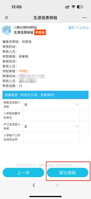 4、填写完成后,点击提交核验后,等待学院审核即可