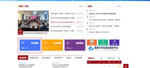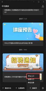 2、单击微首页-学生入口,打开登录页面,登录(初始账号为学号,密码为身份证后六位,首次登录需要修改密码)。