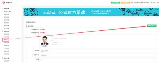4、提交完成后,等待学院审核通过后,即可通过PC端(http://zbjy.nuc.edu.cn/、进入后点击学生登录)进行打印。