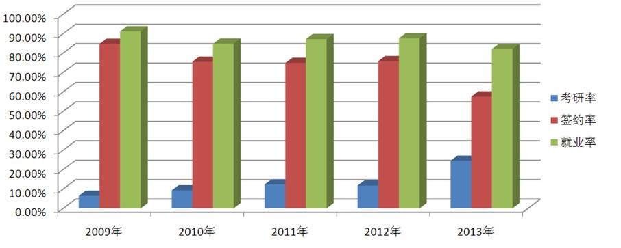 图2 近五年武器发射工程学生就业情况