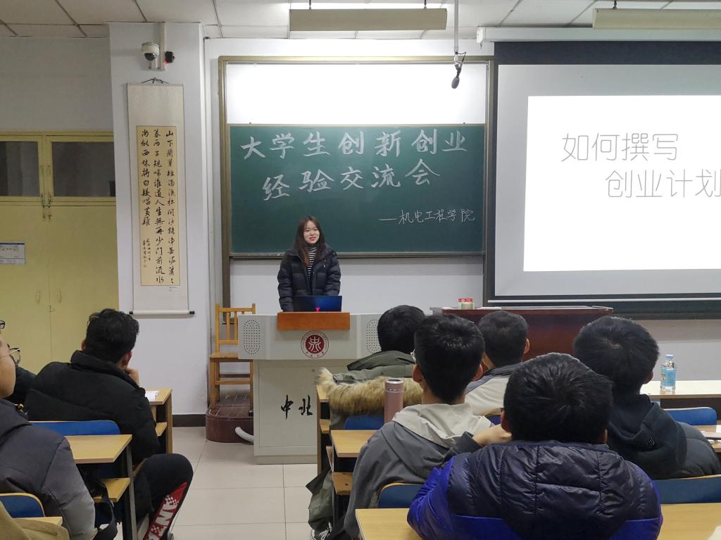 为培养当代大学生的实践能力和创新精神,12月1日下午16点,机电工程学院大学生创新创业交流会于11305H教室成功举行。参与本次活动的是学生科凌霄老师,学生马力、邵子军、白雄、唐东洋、朱珂同学,信息与通信工程学院的刘子帅同学以及经济与管理学院的张雨同学给大家分享其参赛经验,包括PPT制作,策划书撰写以及实物制作等。