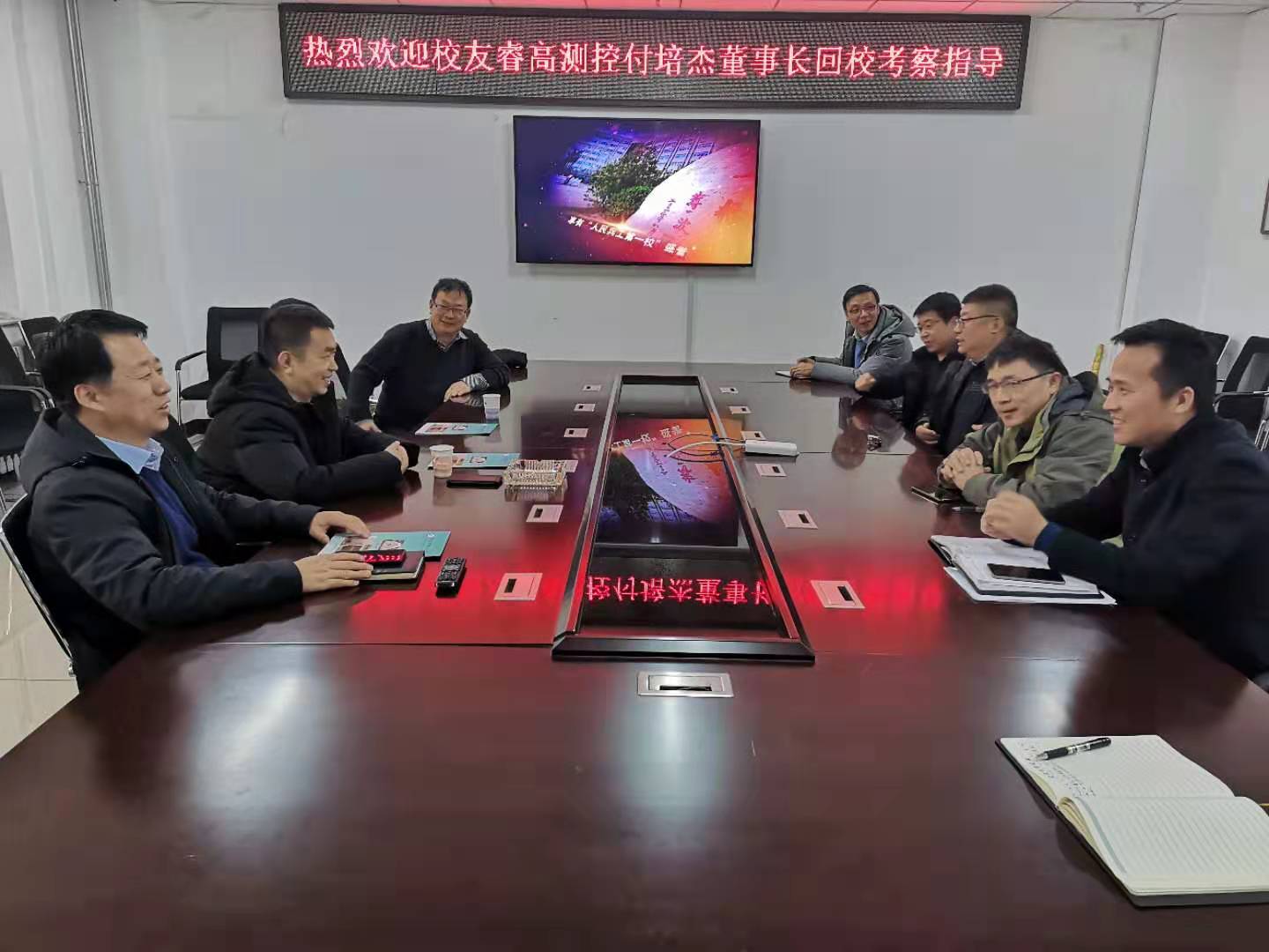 12月17日,我院校友、西安睿高测控技术有限公司董事长付培杰、技术骨干袁毅二人专程回访学校,在建校80周年之际,与我院沟通捐赠事项,探讨校企合作事宜,学院教师杨臻、王利、崔俊杰、韩晶及院领导参加了座谈会。