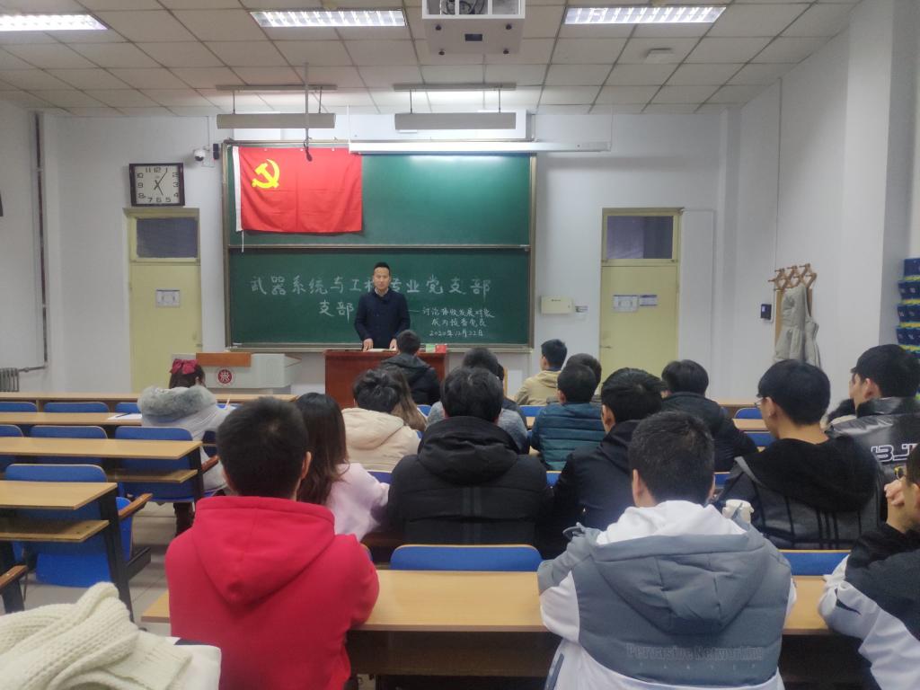 2020年12月22日下午16点整,机电工程学院武器系统与工程专业党支部在11207H成功举办了讨论接收发展对象成为预备党员大会。大会由支部组织委员杨洋同志主持,参加此次大会的有武器系统与工程专业党支部的支部书记刘光老师,全体学生党员和预备党员,及3名即将成为预备党员的发展对象。