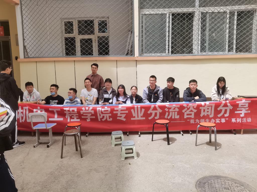 为学习贯彻习近平总书记在党史学习教育动员大会上的重要讲话精神,并与实践相结合,积极响应“我为师生办实事”的号召,帮助大一新生解答在专业分流中遇到的疑问,2021年05月07日,机电工程学院各本科党支部在文瀛17号楼楼下开展了本次专业分流咨询分享活动。