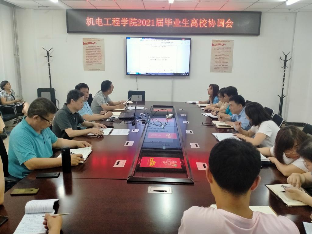 2021年6月15日下午17时,为保证2021届毕业生离校工作有条不紊地开展,机电工程学院在科学楼313会议室召开了毕业生离校协调会。学院领导、各系主任、各科室负责人、毕业生班主任、辅导员老师及部分毕业班班长参加了此次会议,会议由院党委书记罗建国主持。