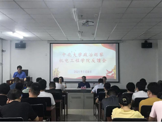 2021年7月8日下午,中北大学党委巡察机电工程学院反馈会议在科学楼A座812会议室召开。校党委副书记、校巡察领导小组副组长薛智、第一巡察组组长孟建新出席,巡察组、巡察办成员、学院领导班子及全体教职工参加会议,会议由校纪委副书记兼巡察办主任郑智贞主持。