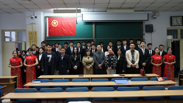 随后,学生骨干代表进行了旗帜交接,并由尹云飞同学带领大家宣读誓言,充分体现出了大家对做好学生工作的决心。