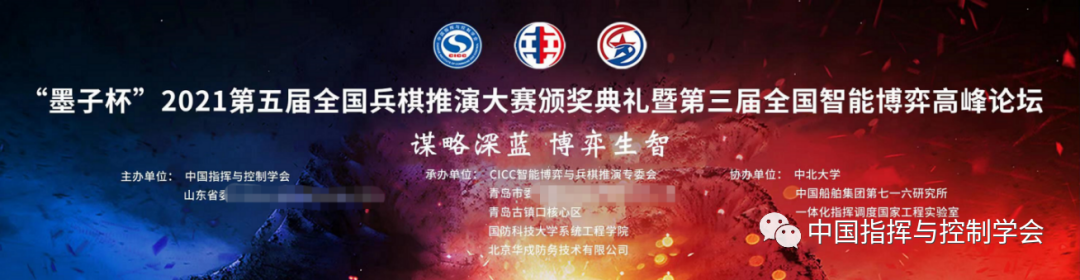 2022年4月17日,“墨子杯”2021第五届全国兵棋推演大赛颁奖典礼暨第三届全国智能博弈高峰论坛顺利召开。活动采取“线上+线上”会议形式组织,中国指挥与控制学会,山东省、青岛市有关单位,青岛西海岸新区、古镇口核心区管委,及兵棋推演和智能博弈领域有关高技术企业的40多名领导出席现场活动,国防科技大学、中北大学、中国船舶集团第七一六研究所、一体化指挥调度国家工程实验室等大赛组织单位领导,各省赛区承办单位领导、大赛优胜选手、智能博弈和兵棋推演领域专家共约260人通过线上会议系统参加。我院王志军、曹红松、王丙龙等老师和涂坤海、何骏贤等选手参加了线上会议。