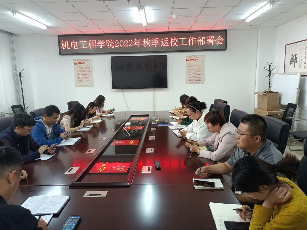2022年9月6日上午10时,机电工程学院在科学楼313会议室召开2022年秋季开学返校工作会议,全体班主任及辅导员老师参加会议,会议由院党委副书记刘光主持。