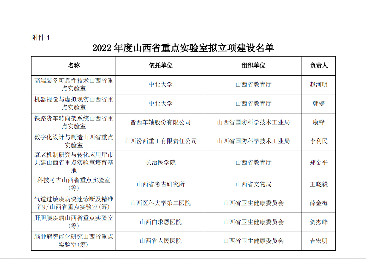根据省科技厅“关于2022年度山西省重点实验室等三类科技创新平台拟立项名单的公示”,我院申报的高端装备可靠性技术山西省重点实验室获得立项建设。
