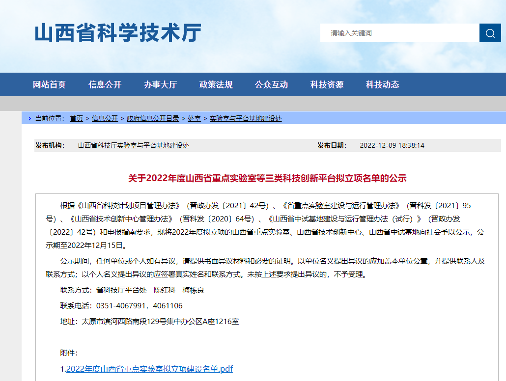 2022年12月9日和13日,山西省科技厅网站分别公示了《2022年度山西省重点实验室拟立项建设名单》和《2022年度山西省产业技术创新战略联盟拟认定名单》。其中,由中北大学机电工程学院牵头建设的高端装备可靠性技术山西省重点实验室以及山西省大型电机健康管理产业技术创新战略联盟两个项目方案同时入选。