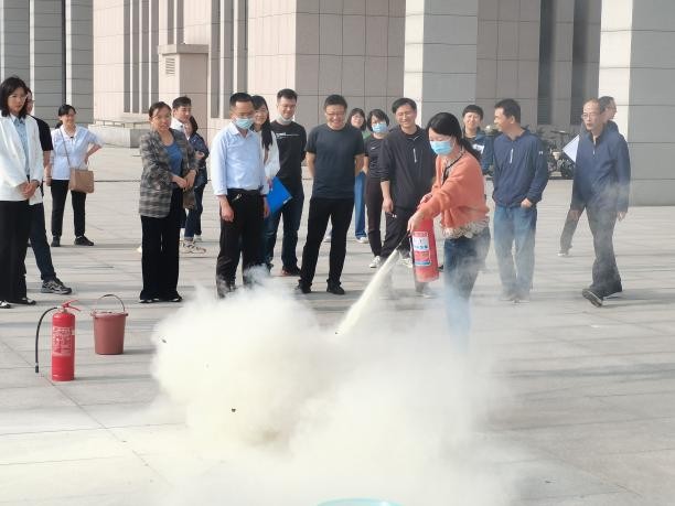 演练开始后,楼内师生有序撤出到科学楼西侧平台;然后史科长对消防安全知识进行了细致讲解,特别强调电动车不能在楼里充电,因为电动车一旦燃烧起来,毒烟会迅速向上蔓延,很快就能导致整幢楼陷入毒烟密布的状态,造成人员伤亡甚至群死群伤的火灾事故;接着史科长为师生们讲解了灭火器的正确使用方法和注意事项,并对灭火器的使用进行示范,随后大家亲自体验了现场灭火。整个消防灭火演练过程井然有序,有条不紊。