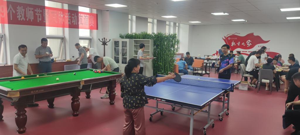 教师们通过参加乒乓球、台球、纸牌、五子棋等比赛活动,放松身心,释放压力,增进彼此友谊。“机电之家”也成为一个展现个人才艺、举办学术沙龙、增进团队合作的地方。通过举办教师节联欢活动,学院对辛勤付出的教师表达了感激之情和衷心敬意,祝福“无上光荣的人民教师”教师节快乐!