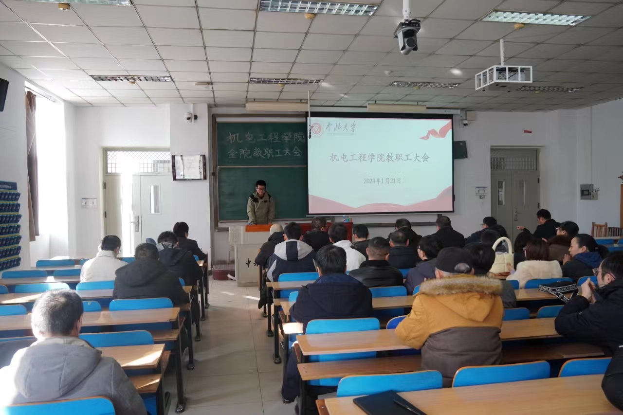 此次期末全体教职工大会的召开,是机电工程学院对过去一学期工作的总结,也是对未来工作的规划和部署,旨在让全体教职工对学院的发展有更清晰的认识,保持攻坚克难精神,为个人、学院、学校的高质量发展谋划再出发,开启新征程。