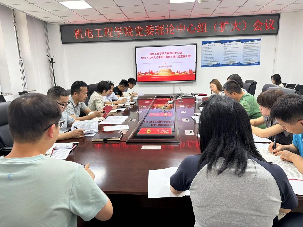 2024年5月23日上午,机电工程学院党委在科学楼A座313会议室组织开展理论中心组党纪集中学习会,重点学习《中国共产党纪律处分条例》第六章至第七章以及《中北大学保密工作考核与奖惩管理办法(试行)》的内容,学院党委委员、各科室负责人及各党支部书记参加会议,会议由机电工程学院党委书记赵永娟主持。