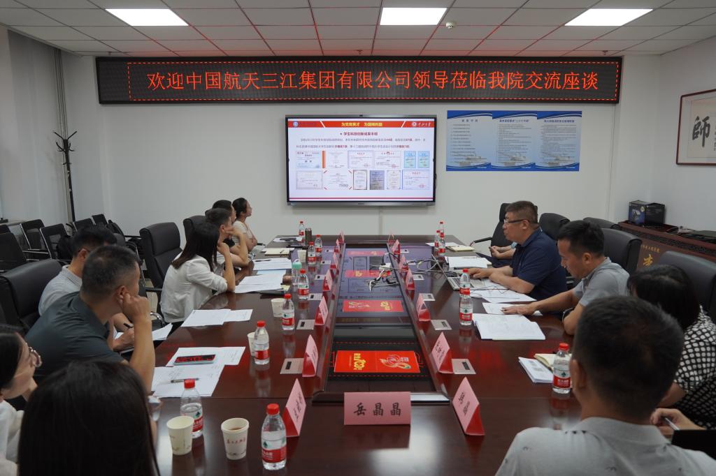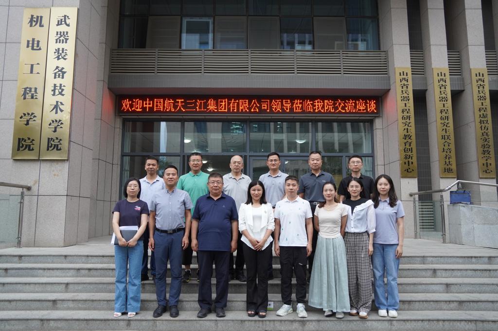 7月2日,中国航天三江集团有限公司人力资源部副部长刘玮、人力资源部人才处副处长席光裕,携湖北三江航天红林探控有限公司人事教育处处长王磊、湖北三江航天险峰电子信息有限公司人力资源部部长栗庆元、湖北三江航天万峰科技发展有限公司人力资源部部长吕朝阳、航天重型工程装备有限公司综合管理部部长关文秀、湖北三江航天江北机械工程有限公司人事教育处副处长豆晓彤、湖北三江航天万山特种车辆有限公司人力资源部主管岳晶晶,来我院就人才招聘、研究生联合培养等问题进行了交流讨论,座谈会由学院党委副书记刘光主持,机电工程学院副院长赵河明、研究生院招生就业科科长关春燕及学院相关专业老师参会。