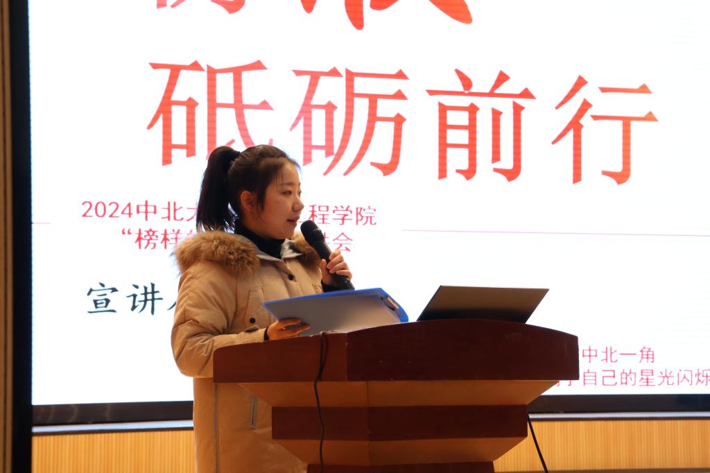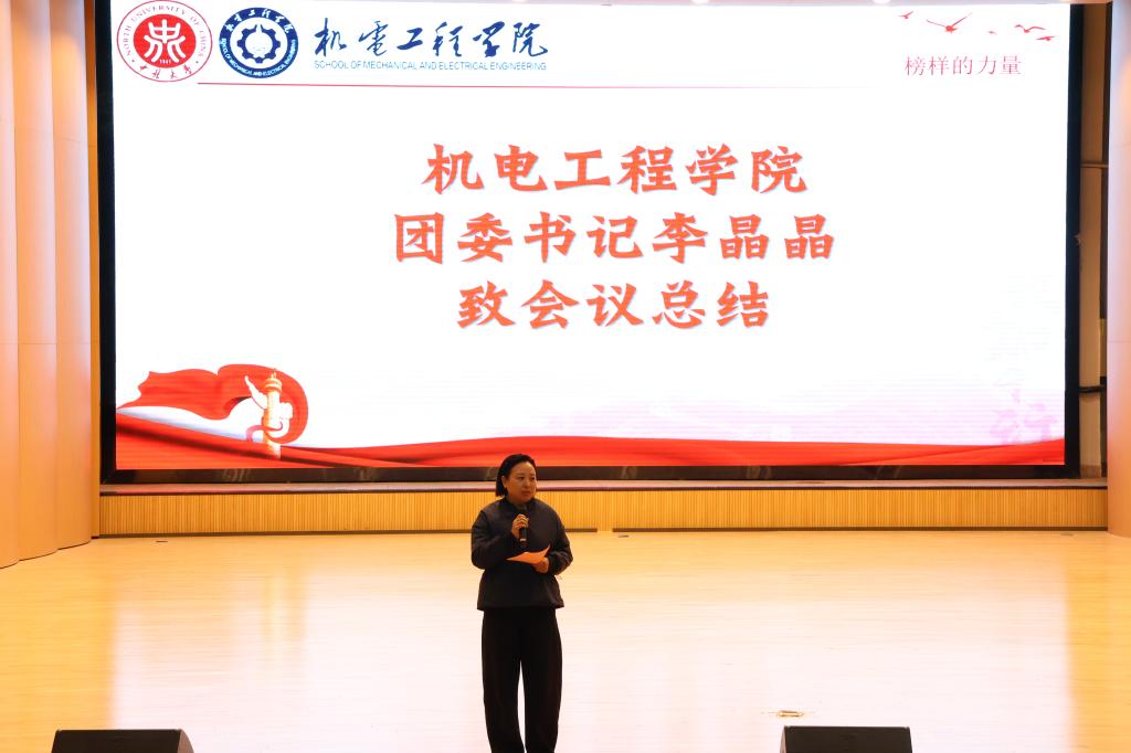 活动最后,机电工程学院团委书记李晶晶总结,她指出本次榜样的力量宣讲会意义深远,通过各位优秀学生代表的亲身讲述,深切感受到他们在追求梦想、砥砺前行的过程中坚定的信念与不懈的努力。同时也希望同学们能以此次宣讲会为契机将榜样的精神内化于心、外化于行,在青春的赛道上奋力奔跑,书写自己的辉煌篇章,为学院增光添彩。