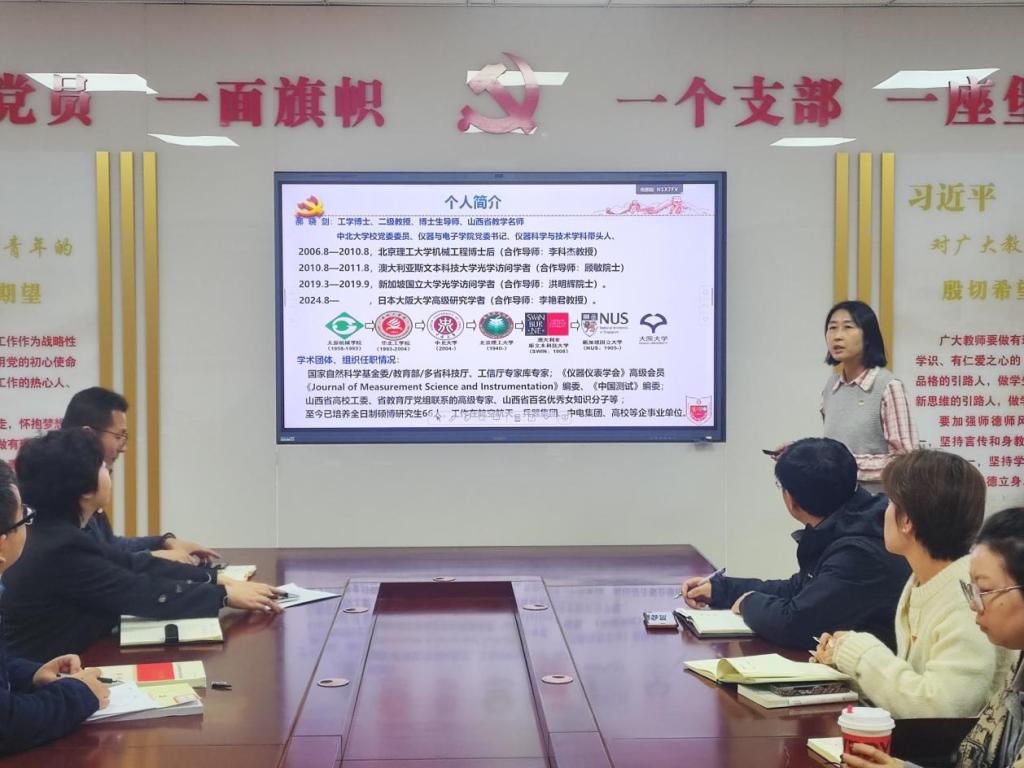 郝晓剑书记分别从“制度建设”“政治建设和作风建设”“思想建设”“组织建设”“科学治理体系建设”五个部分讲述仪器与电子学院的党建工作。