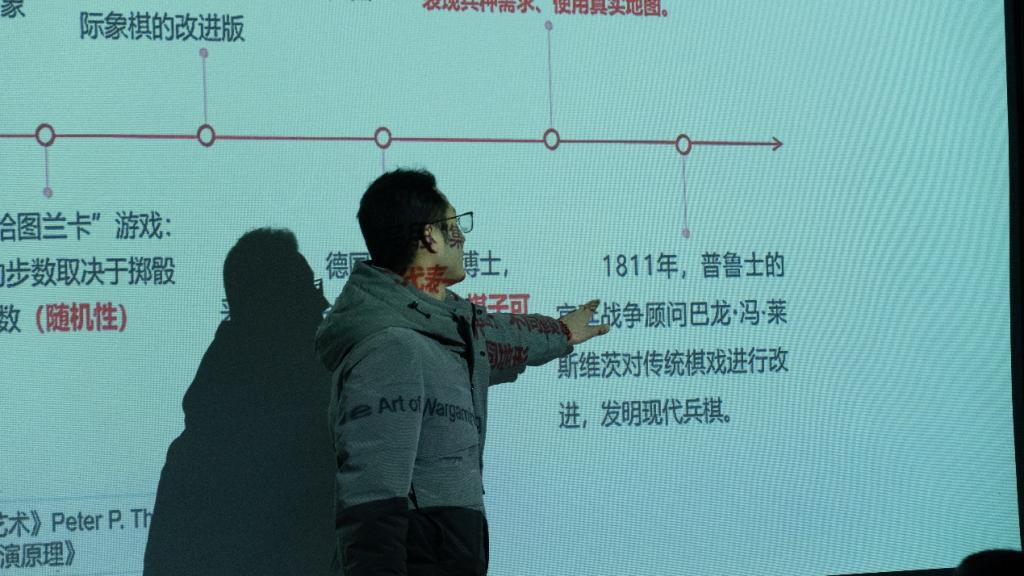 随后,王丙龙老师进行了兵棋推演的经验分享。他提到:“兵棋推演作为一种重要的战略分析和决策辅助工具,能够帮助我们在虚拟环境中模拟各种复杂的战场态势和战略决策情景,进而得出科学合理的应对策略。”同时他也对同学们提出了希望,期待大家未来也都能参与到兵棋推演大赛的工作中来。