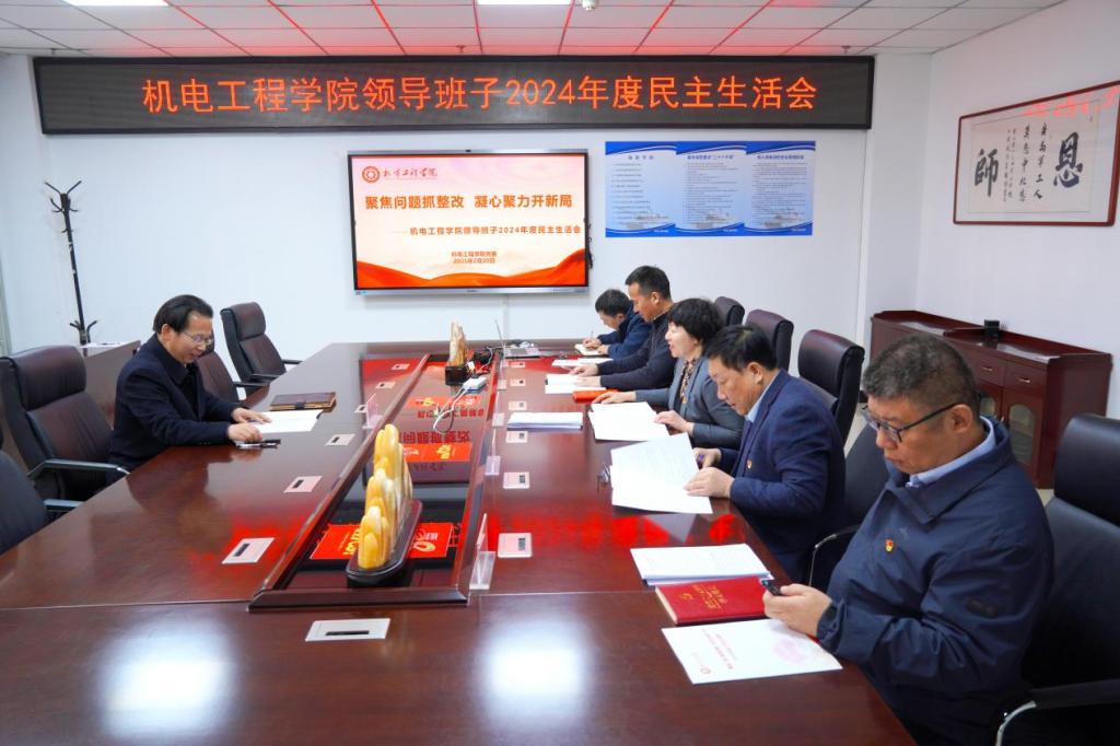 聚焦问题抓整改,凝心聚力开新局。按照校党委部署要求,2月20日上午,机电工程学院党委在科学楼A座313会议室召开院领导班子2024年度民主生活会。校党委书记张晓永出席会议,全体院领导班子参加了会议,会议由机电工程学院党委书记赵永娟同志主持。