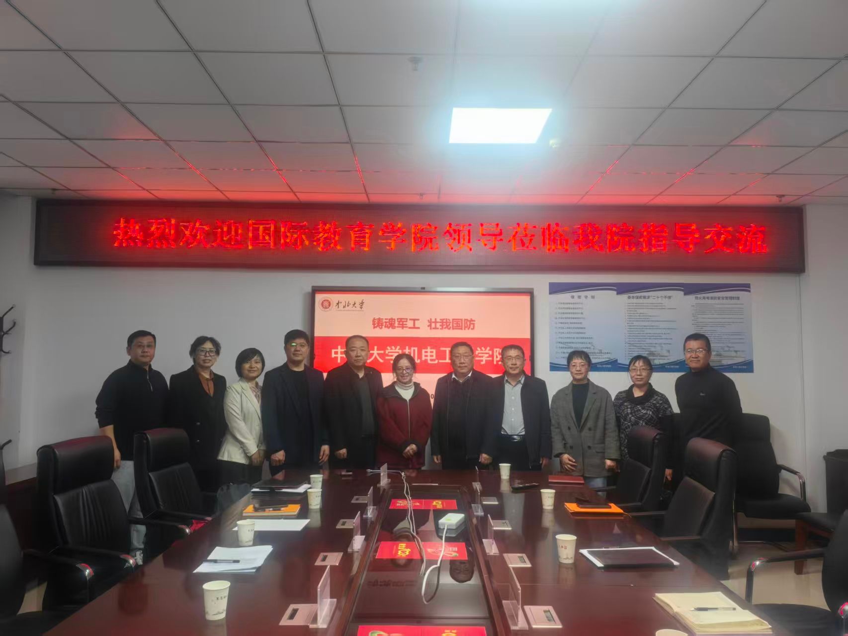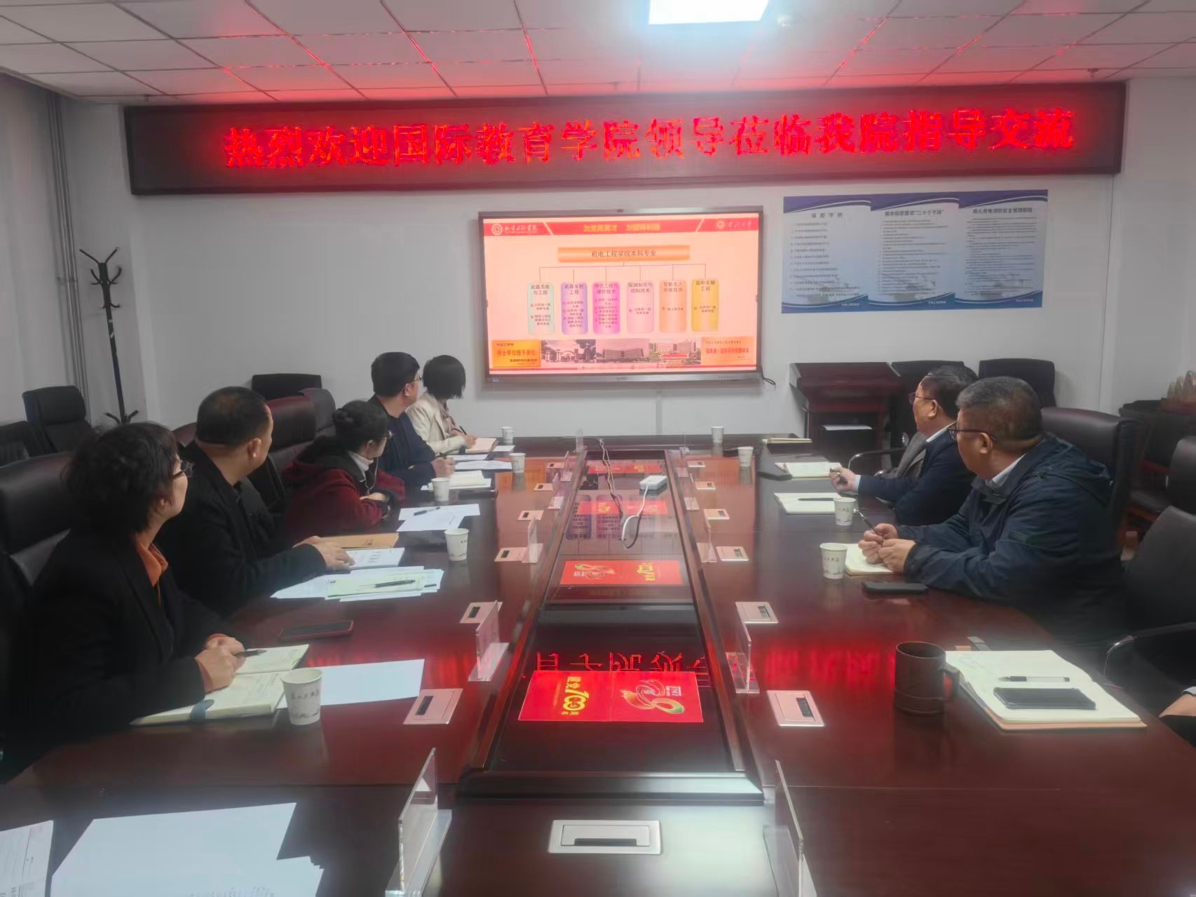 李强院长代表学院对赵宇宏院长一行的到来表示热烈欢迎,并介绍了学院的基本情况,重点就学科专业方向、学生综合素质培养、学生就业、科研等进行了说明,并指出国际交流合作是机电工程学院高质量发展的短板和弱项,急需国际交流学院的大力支持和帮助。