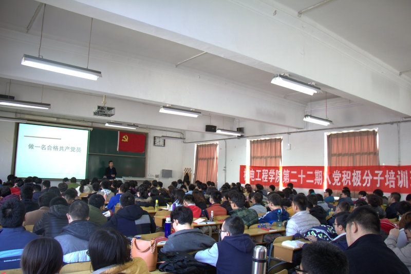 2016年11月27日上午八点整,机电工程学院第二十二期入党积极分子培训班课程继续在12302教室举行。