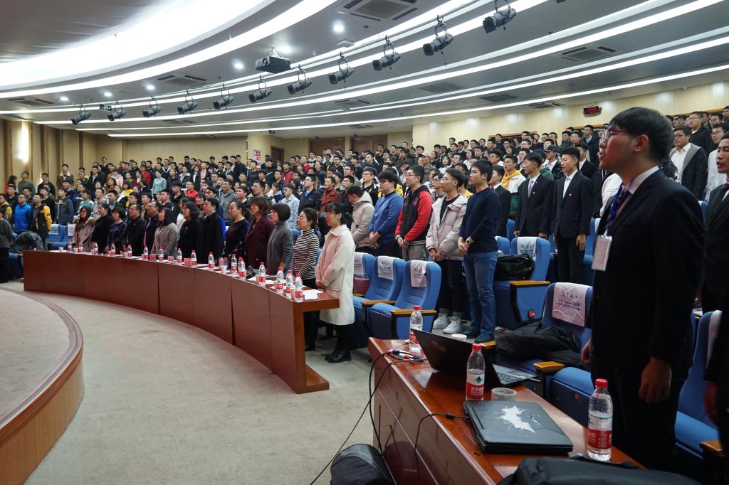 班级建设设计大赛在朗朗的国歌声中拉开序幕,慷慨激昂的歌声激发了全场观众的热情。大赛一开始由机电工程学院党委书记罗建国致开场词。他表示机电工程学院班建活动走过了六年的时光,班级建设在大学中拥有着非同寻常的意义,一个班级只有拥有完善的班级管理制度才可以在未来的四年中创出优良学风,他希望各班以此为契机将班级建设贯彻在大学的四年中,在实现强大国防和学校百年百强的道路上不断努力。在答辩环节,各班级铿锵有力、激情飞扬的班歌彰显了机电工程学院的青春风采。此外,各班班长向在场师生介绍了班级建设的出发点和着力点,提出了学风建设、思想道德建设、文体素质建设、班风班貌建设等多种建设方案,并着重强调了如参加社会服务、筹建班级银行、设置班级兴趣小组、组织集体自习等班级特色方案。其中19010411班将美食制作与班级建设巧妙结合,19010502利用班级同学与中北的爱情故事展示班级团结的风貌、19010405借助虚拟班级人物“小五”动态讲述奋斗历程,19010401班的答辩则极尽铿锵有力,19010s01班则把机器人搬上舞台科技感十足,各班班长以虚实结合、感情与制度两条主线叙述班级建设的故事,船长、机长、国潮、科技、创新这些独特的词汇获得在场所有同学的一次次掌声。各班在答辩中还间穿插了集体口号、才艺表演、情景话剧、宣誓、三维动画、蒙太奇混剪等多种独特、新颖的手法,向全院师生展示了三个月来的班级建设成果,并对未来做出了展望。嘹亮的口号和歌声,震撼的动画和特效,激情澎湃、张弛有度的演讲,给现场观众带来了一场场的视听盛宴,推动现场氛围走向高潮。答辩中场全场同学合唱《夜空中最亮的星》,点点闪光灯如同那夜空中闪闪星光,“新青年唯奋斗不负韶华”的振振誓词更是将答辩推向了高潮。