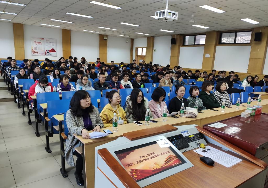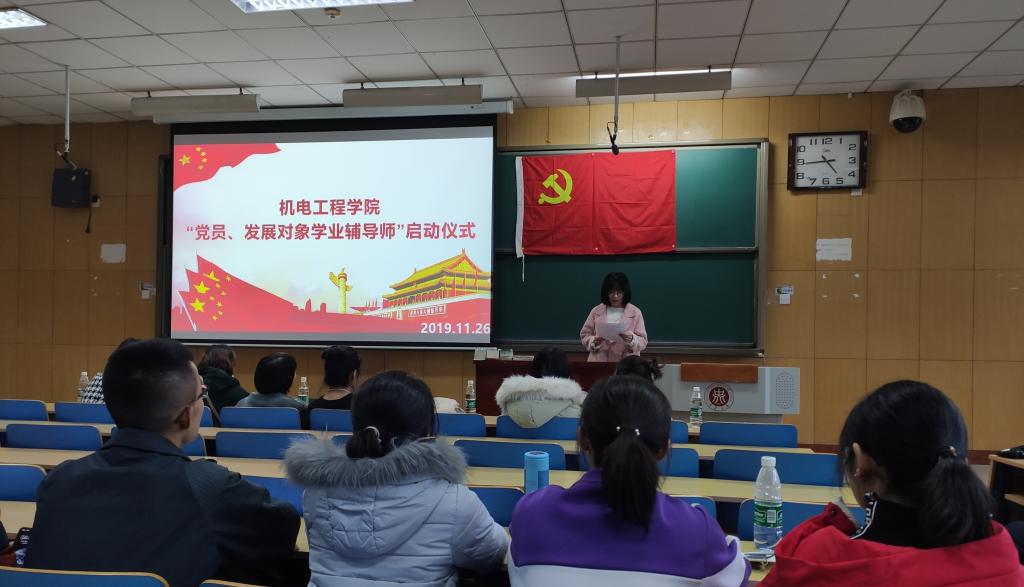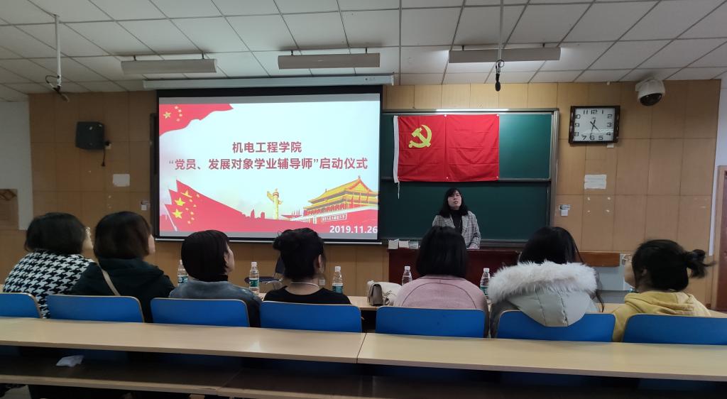 为进一步深入贯彻落实十九大精神,发挥和基层党支部的堡垒作用和党员的先锋模范作用。2019年11月26日下午四点,机电工程学院于11409教室举办“党员、发展对象学业辅导师”启动仪式,机电工程学院各专业党支部书记、副书记、支部委员,19、18级各班班长和学习委员以及各学业辅导小组成员参加了本次会议。