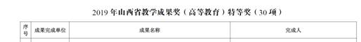 2020年1月20日,教育厅晋教师函[2019]82号文公布了2019年山西省教学成果奖获奖名单,我院尹建平老师牵头的“国防特色院校“四位一体”国防育人体系的构建与实践”、赵捍东老师牵头的“基于“校企联合”的大学生工程应用能力提升与实践”分获特等奖、一等奖,张素华老师参与的“以教师教学能力提升为突破口,教师全方位发展中北实践”获得二等奖。