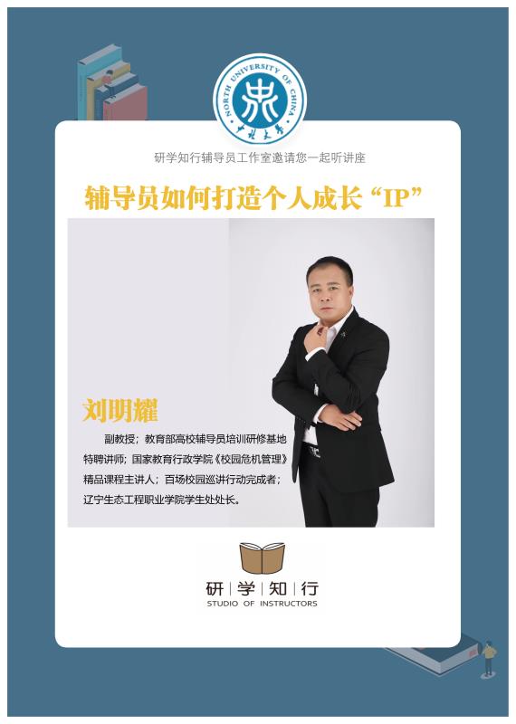 本次论坛特别邀请到辽宁生态工程职业学院学生处刘明耀处长,刘处长,副教授,教育部高校辅导员培训研修基地特聘讲师,国家教育行政学院《校园危机管理》精品课程主讲人,场校园巡讲行动完成者,人民网舆情分析师、国家职业指导师、全球规划师、目前运营辅导员联播公众号。