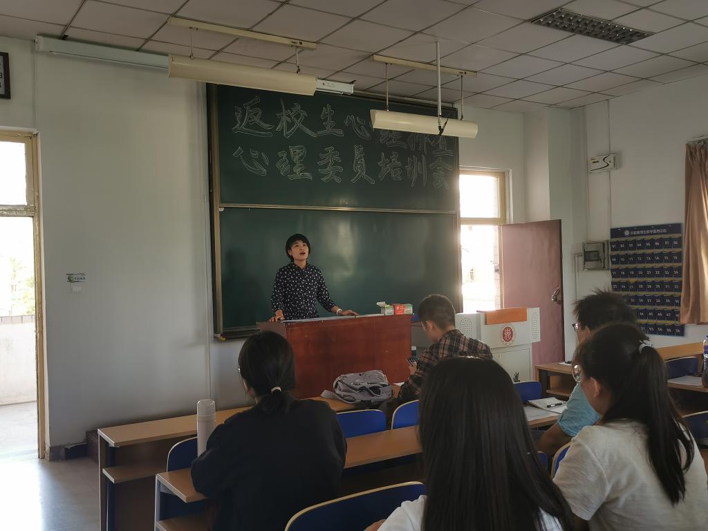 本次会议的主要目的是安排我院返校生心理排查工作,并了解各班工作推行中的具体困难,同时鼓励心理委员不忘初心,对班级和学院心理工作要始终本着认真负责的态度。会议上,贺老师对不同年级不同类型学生可能发生的心理问题进行了讲解。她讲到,虽然我们时隔半年顺利开学了,但很多学生可能是带着过去半年积累的家庭问题、心理困惑来到学校的。17级学生面临考研环境多变和压力倍增对心理的影响;19级学生面临入学半年后就莫名升入大二的心理适应等问题。贺老师还与在场同学互动交流,伊铭、孟照博等同学分享了自己在假期期间的感悟。最后,贺老师再次强调心理委员的责任意识,并希望大家在这个大家庭中互帮互助,共同为学院心理工作的完善努力。