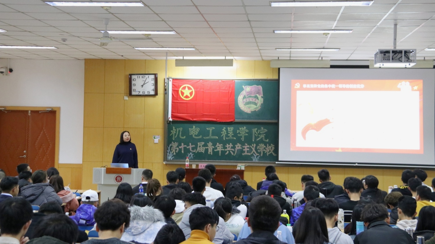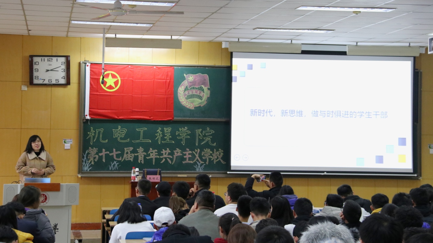 为培养学生干部的责任意识,让学生干部更好的开展工作,第十七届青年共产主义学校培训活动在11408H教室顺利举行,校团委书记顾宁、材料学院团委书记毋登辉、机电工程学院党委书记罗建国、副书记刘光、院团委书记李晶晶、院学生科科长张丽花老师为在场的老师和同学们进行授课。