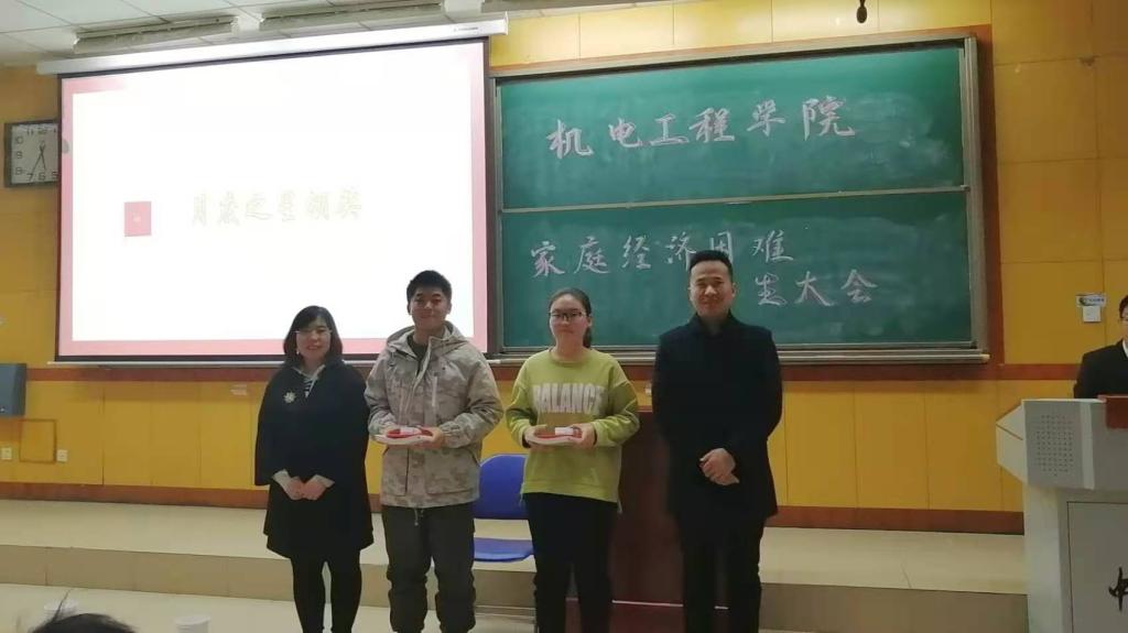 本次会议主要为20级家庭经济困难学生及17,18,19级新认定的家庭经济困难学生进行奖助学金、勤工助学岗位的介绍,并邀请到大四经济困难生肖金沛和陈毅作为优秀学生代表分享了大学生活学习工作经验、感想、成功保研的学习方法,除此之外,于晓东同学为大家讲述了勤工助学的心得和感悟,让大家更直观了解了勤工助学岗位。刘光书记和张丽花老师为获得勤工助学月度之星荣誉的同学颁发荣誉证书。
