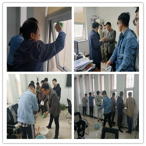 各支部党员由支部副书记带领分批次在科学楼A座集合,大家在协调分配过后,有序来到各个楼层各个办公室,按照计划开展工作。在大家的共同努力下,玻璃窗亮洁如新。期间,罗建国书记、刘光副书记也加入劳动,身体力行地指导学生使用双面玻璃清洁器,并了解大家的学习生活情况。