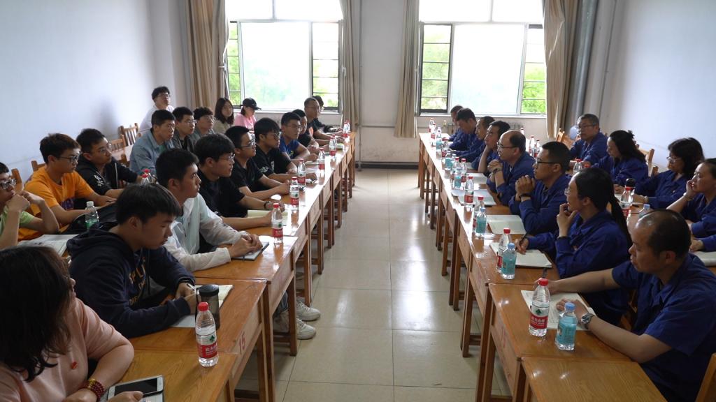 然后,江阳公司七分厂赵厂长发言,他对江阳化工厂的发展历程和主要研究现状做了介绍,表示我校与江阳化工厂的深厚友谊,同时欢迎大家到江阳公司实习、工作。接着,党支部组织委员也做了分享,勉励同学们要树立远大理想,并为同学们送上了祝福。最后,学生党员们就自己当下的疑惑进行提问,江阳化工厂的同志们为大家做出了解答并提出了建议。