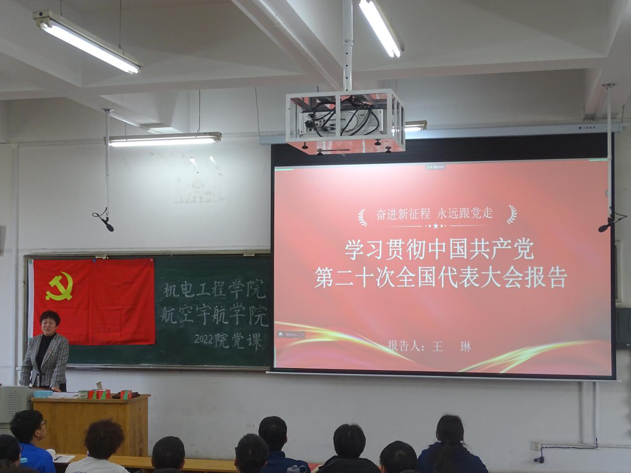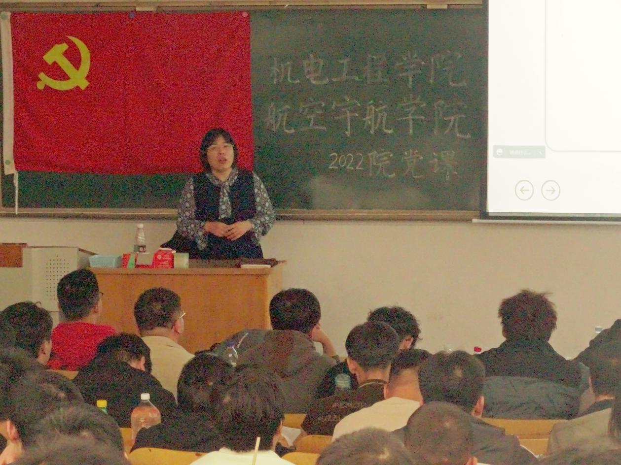 第八讲由航空宇航学院学生科科长张丽花老师进行授课,张老师授课的主题是“新时代,新思维,做与时俱进的共产党员”。期间张老师总结了党发展过程中形成的一系列精神,他强调了中国共产党胜利的果实来之不易,作为新时代大学生,作为军工学子,我们要牢记“自力更生,艰苦奋斗,军工报国,甘于奉献,为国争光,勇攀高峰”的军工精神。坚定不移听党话、跟党走,怀抱梦想又脚踏实地,敢想敢为又善作善成,立志做有理想、敢担当、能吃苦、肯奋斗的新时代好青年,让青春在全面建设社会主义现代化国家的火热实践中绽放绚丽之花。