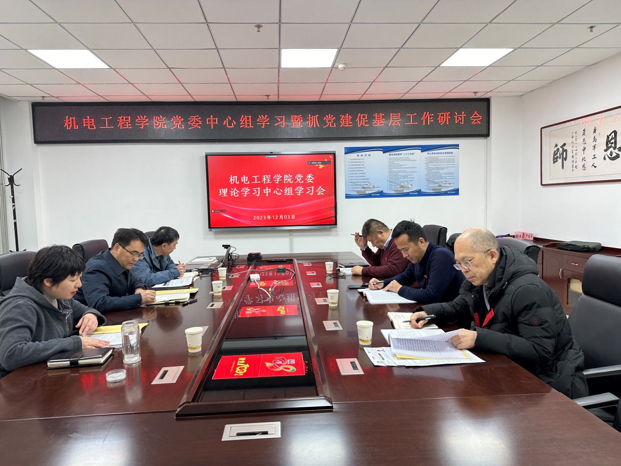 2023年12月3日上午9时30分,机电工程学院党委在科学楼A座313会议室召开党委理论学习中心组学习会。校党委常委、副校长兼机电学院院长尹建平、学院党委委员、领导班子成员参加会议,学院党委书记赵永娟同志主持会议。