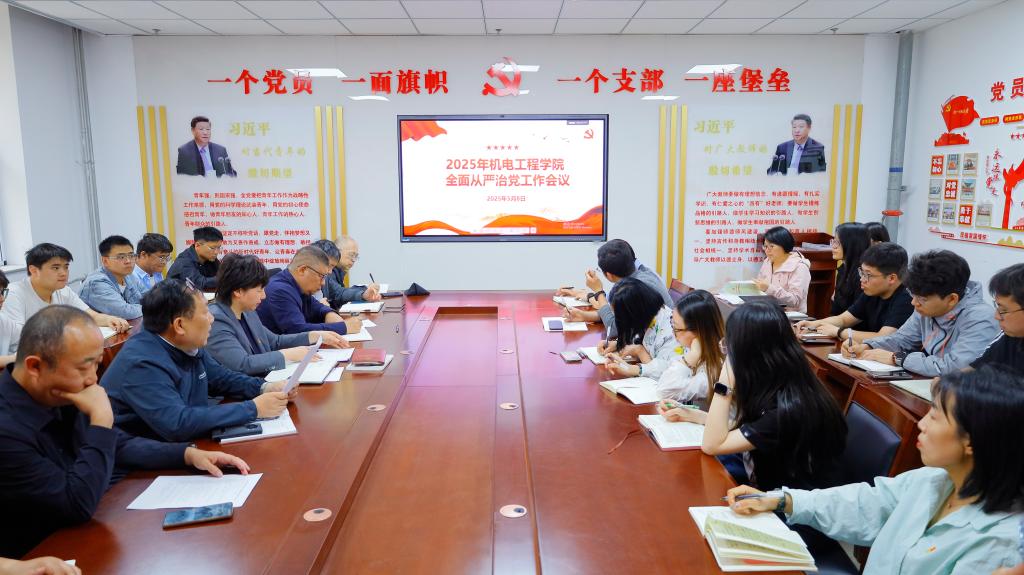 为深入全面落实院党委全面从严治党主体责任,机电工程学院党委于5月8日下午在314党员之家召开了2025年度全面从严治党工作会议。院领导班子、院党委委员、教工党支部全体支委、学生党支部书记、副书记、宣传委员参加了会议,会议由智能武器研究院院长兼机电工程学院副院长(负责学院行政工作)李强同志主持。