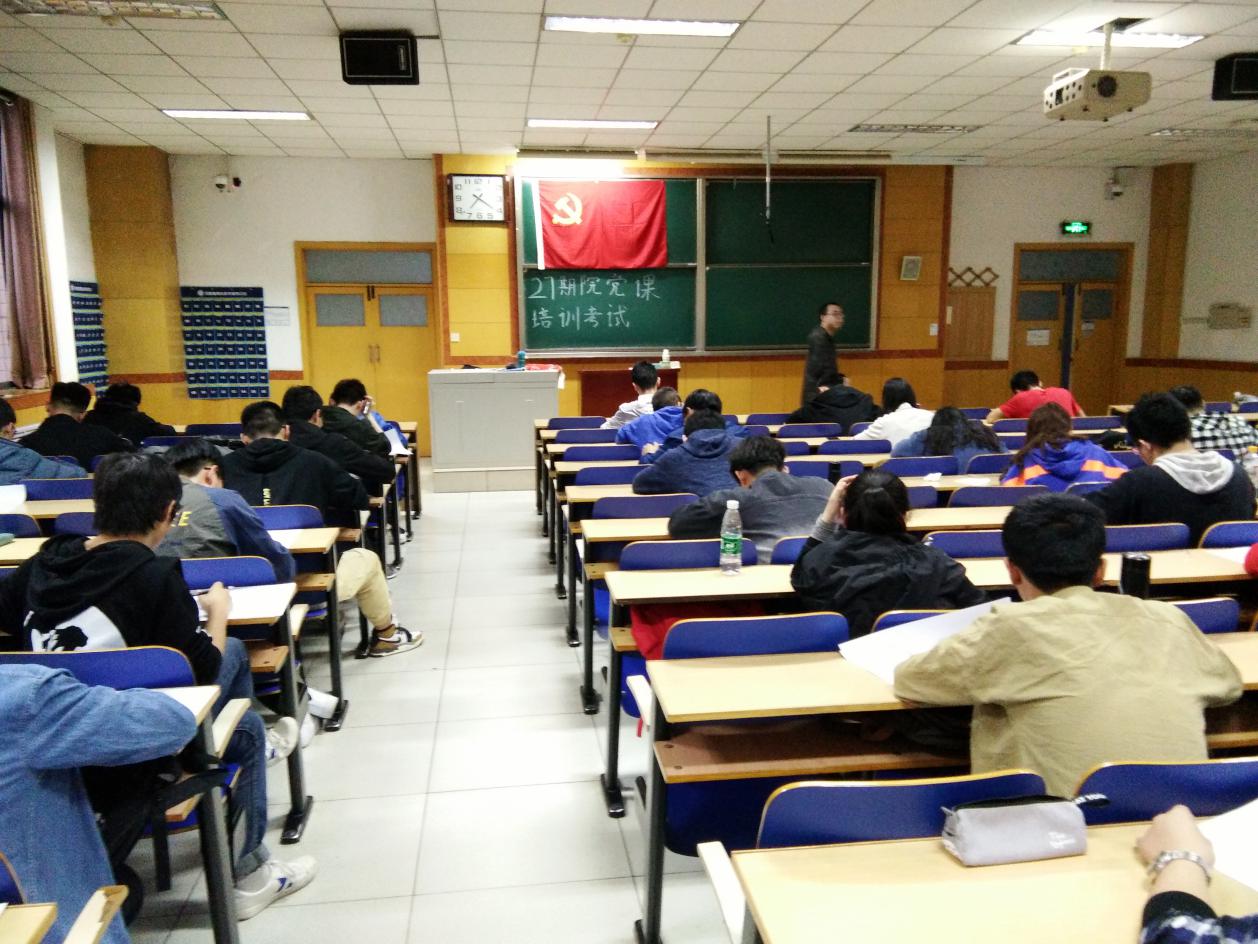机电工程学院第27期院党课结业考试于2019年4月21日晚7时在9号楼302、303、501教室组织进行,参加考试的同学为本学期经班级推优选举确定的180名入党申请人。