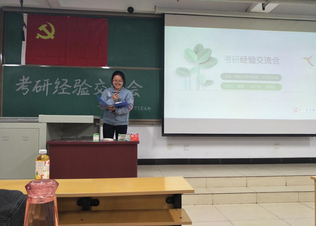 2019年4月19日晚七点,机电工程学院学生第二党支部在15109H教室举办了面向16级飞行器制造工程专业学生的考研经验交流会。此次会议由支部组织委员贾宏宇同志主持,支部全体党员及16级飞行器制造工程专业有考研意向的学生出席了本次会议。
