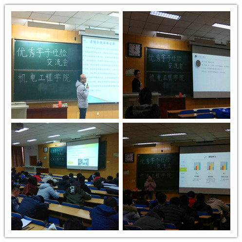 12月13日下午3:00,机电工程学院在11408H举办研究生优秀学子经验交流会。此次经验交流会邀请段怡君、胡艺川、王杰雷、马焱、张晓东五位优秀学子分享研究生经历,2017级研究生新生等参加了经验交流会。