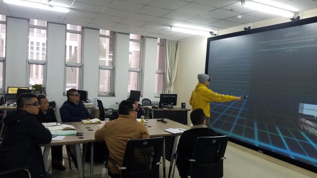 随后,贾主任一行与我院兵器工程虚拟仿真实验教学中心师生进行了深入交流,虚拟仿真中心主任曹红松老师对虚拟仿真中心的情况进行简要说明,学生进行了现场演示和讲解,双方对下一步合作意向达成了共识。