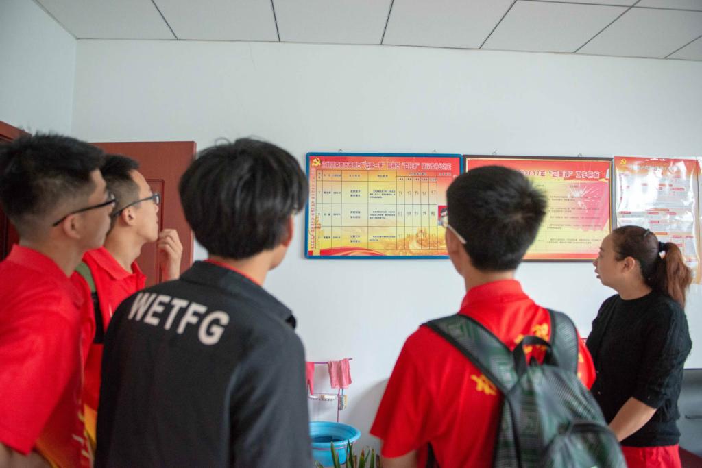 实践队在团委办公室找到了相关负责人,一行包括带队的李老师在内的十七个人员都围坐在一起,与负责人进行了亲密的洽谈。实践队的队长向负责人介绍了我们实践队的具体情况,表明了实践队的来意,并向负责人详细地介绍了我们中北大学暑期社会实践工作的开展流程。负责人表示,暑期社会实践对于大学生来说,是一项有益于学生学习和成长,值得各大高校努力开展的项目。依赖于负责人的帮助,实践队顺利翻开了暑期社会实践的篇章。最后,实践队与团委相关负责人在团委门前合影留念。