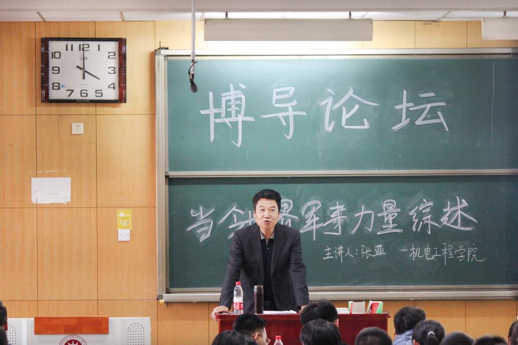 此次论坛的主题是《当今世界军事力量综述》。论坛开始,首先由贺婧老师致开场词。她讲道,一所大学的魅力就在于可以在知识和真理的世界里遨游,更在于有这样可以与大师面对面交流的机会。张亚老师在兵器领域有很深的造诣研究,今天主讲的内容更是学术发展前端,有很多同学感兴趣。希望大家可以通过此次论坛了解国内外发展局势,树立兵工报国情怀,勇担国防使命。