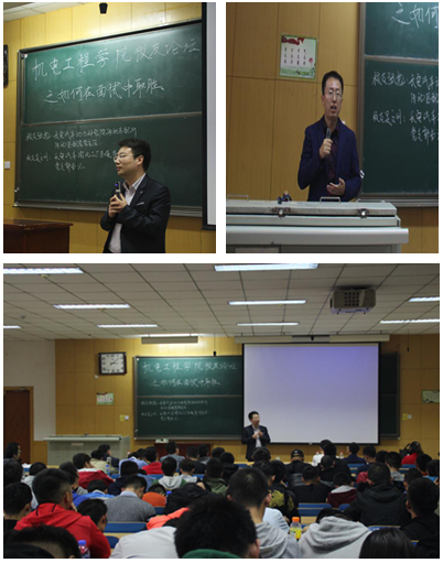 金秋送爽,丹桂飘香,2017年10月21日下午3点30分,11408教室里,我院04级热能与动力工程专业毕业生吴文明、张彪阔别母校10年后重返校园,追忆往昔时光,他们以“如何在面试中取胜”为题,在我院首届校友论坛上为中北学子分享了他们工作10年得到的经验与感悟。学生科科长张丽花老师作为他们曾经的班主任出席了本次论坛。