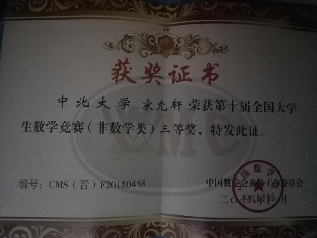 第十届全国大学生数学竞赛(非数学专业)三等奖---张皆佑